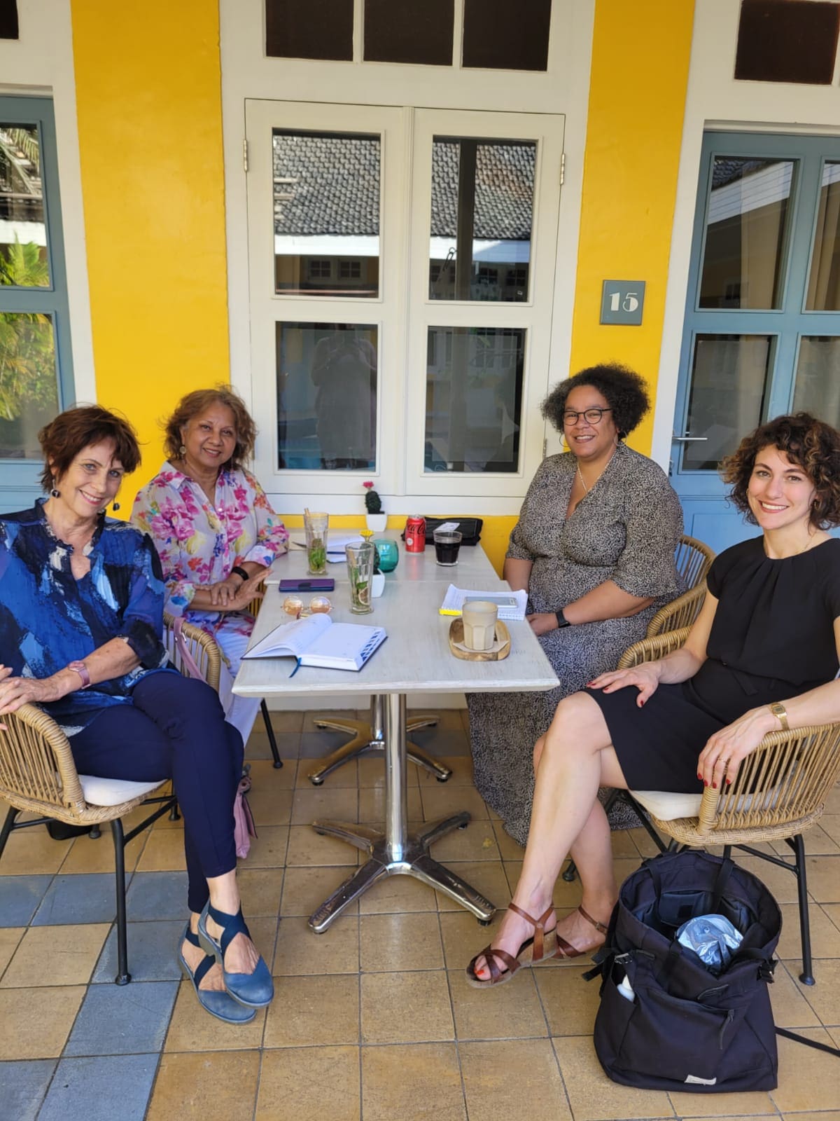 Op bovenstaande foto de ontmoeting van links naar rechts, Ieteke Witteveen en Lucita Moenir Alam van HRDC en rechts de Mw Dagmar Oudshoorn en Yara Boff Tonella van Amnesty International.